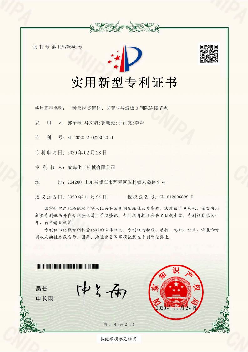 公司建有磁力驅動測試試驗室、攪拌模擬試驗室、反應釜流體混合攪拌重點實驗室等,科研力量雄厚。截至2024年,公司共承擔近280項自主/合作開發任務,先后承擔省級新產品開發任務25項,其中23項產品已達到國內水平。獲得各類省、市級技術創新獎30余項;參與起草、修訂標準共8項,GB/T30098-2013實驗室用磁力驅動反應釜標準、HG/T3648-2011磁力驅動反應釜標準、GB/T29254-2012實驗室反應釜用控制器標準、NB/T47002.1~47002.4-2019壓力容器用復合板;已獲得授權專利95項,其中發明專利19項,實用新型專利69項,外觀專利7項;擁有專有技術和核心技術40余項。