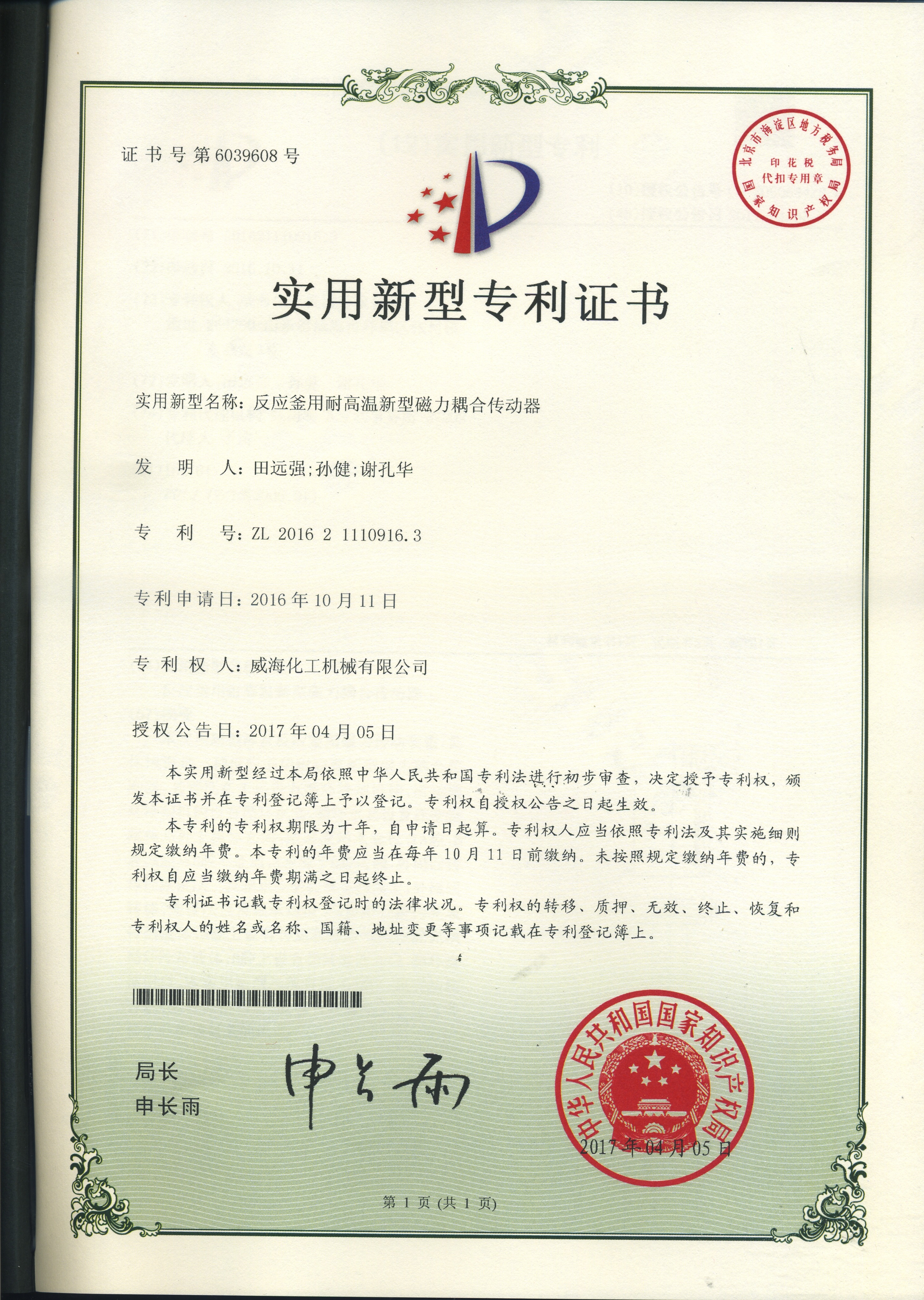 專利證書